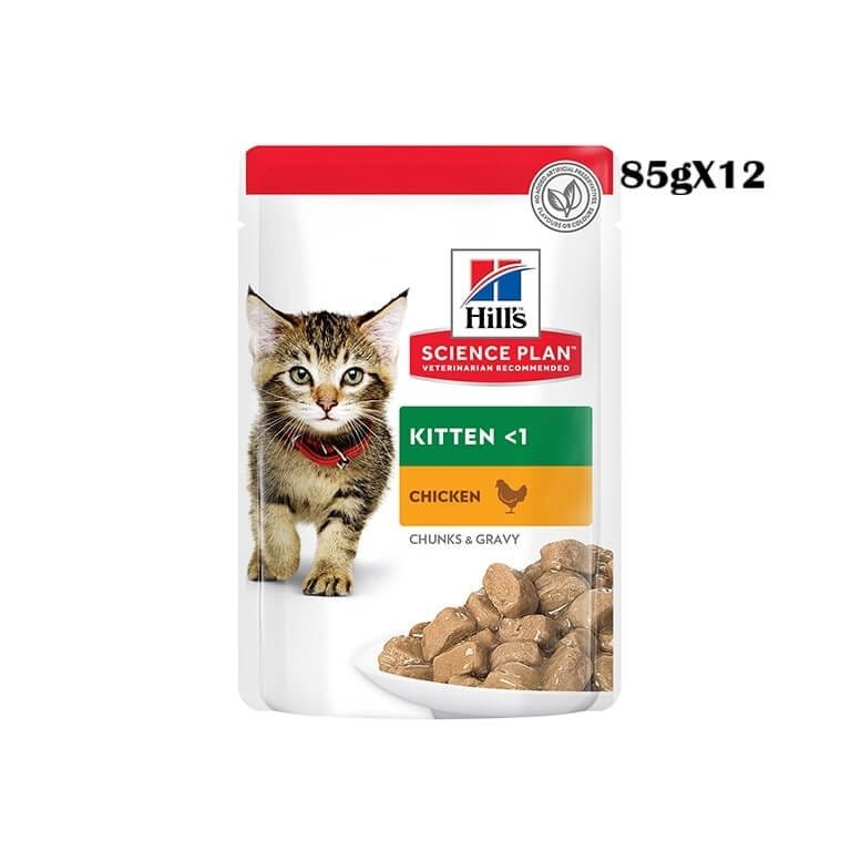 Hill’s Science Plan Tender Chunks in Gravy Kitten Chicken – 85g x12 Pouches | Wet Food for Healthy Kitten Growth