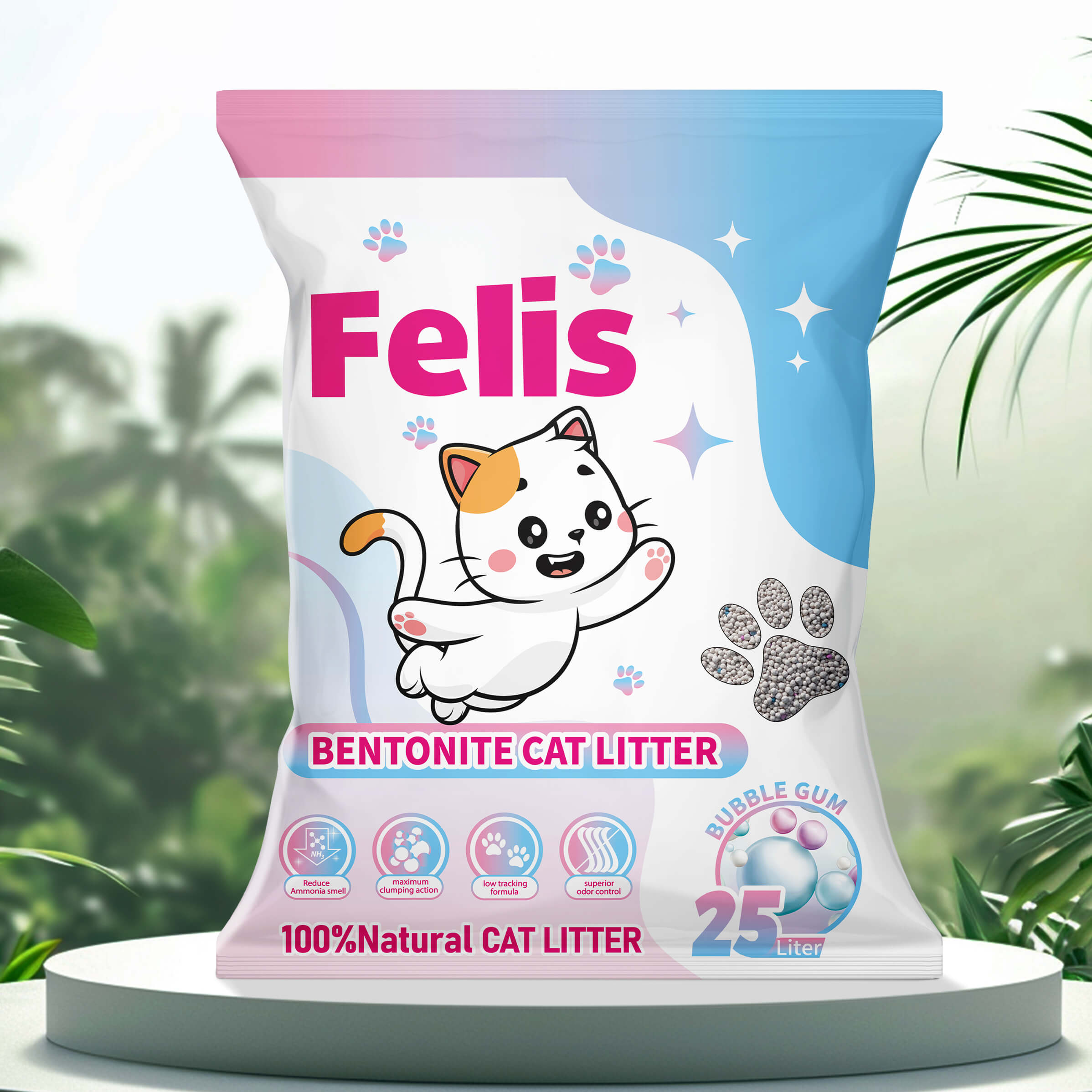 BubbleGum Bentonite Cat Litter – 25L (20kg) Felis Ultra Clumping | Long-Lasting Fresh Bubblegum Scent