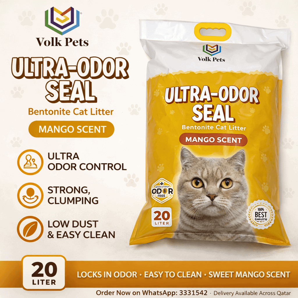 Volk Pets Ultra Odor Seal Mango Scent Cat Litter is a premium bentonite clumping litter designed to deliver powerful odor control with a sweet tropical fragrance.